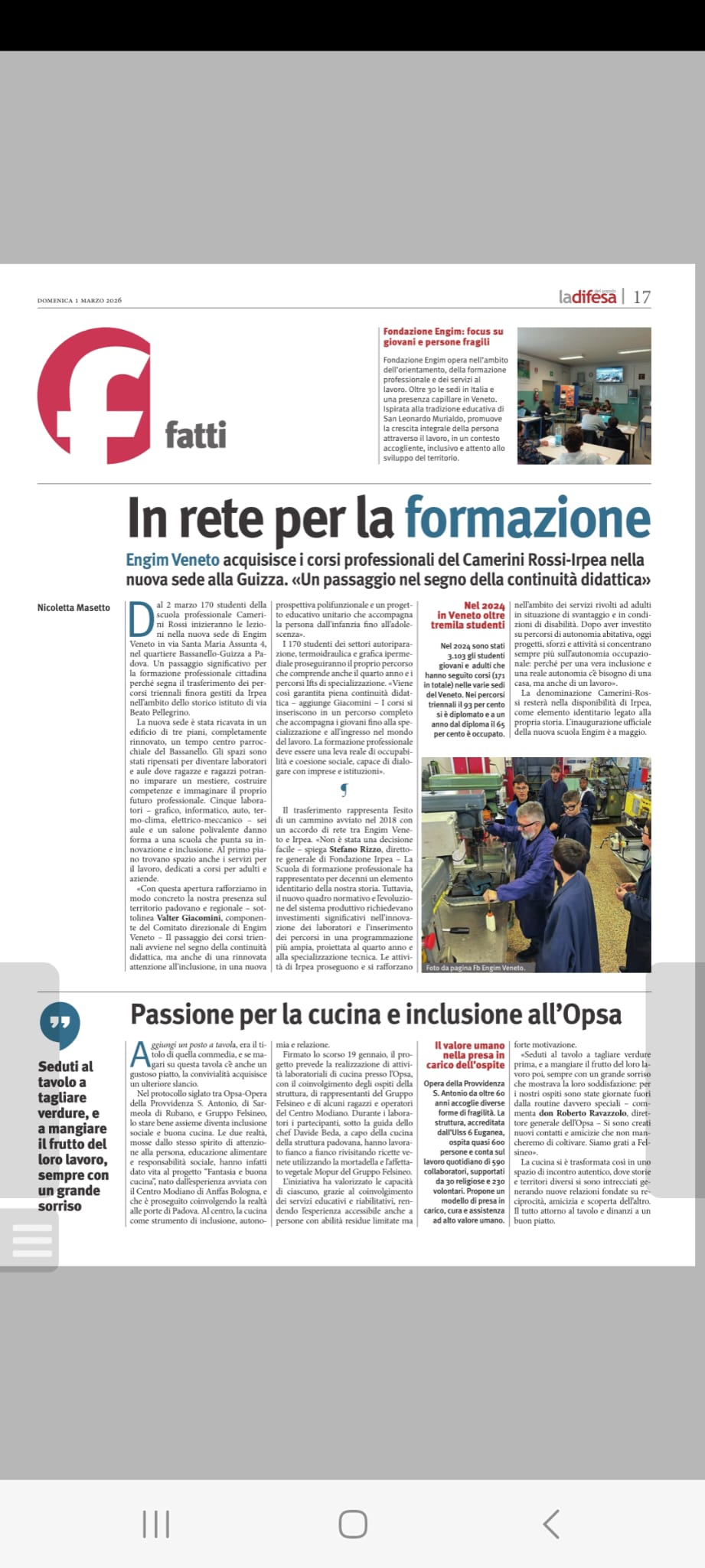“L’apertura della sede di Padova rappresenta un investimento strategico per rafforzare l’offerta formativa regionale e consolidare le reti con imprese, istituzioni e realtà sociali locali, affinché la formazione professionale sia leva concreta di occupabilità e coesione sociale”- queste le parole di Valter Giacomini Membro Comitato Direzionale Engim Veneto