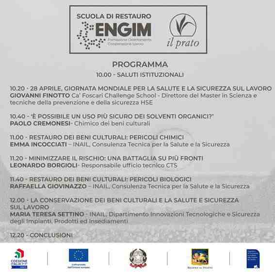 In occasione della Giornata Mondiale per la Salute e la Sicurezza sul Lavoro, la Scuola di Restauro della Fondazione Engim Veneto ETS, in collaborazione con Il Prato Editore, promuove il convegno “Salute e Restauro”, un momento di confronto e approfondimento dedicato alla tutela della salute nel settore dei beni culturali.